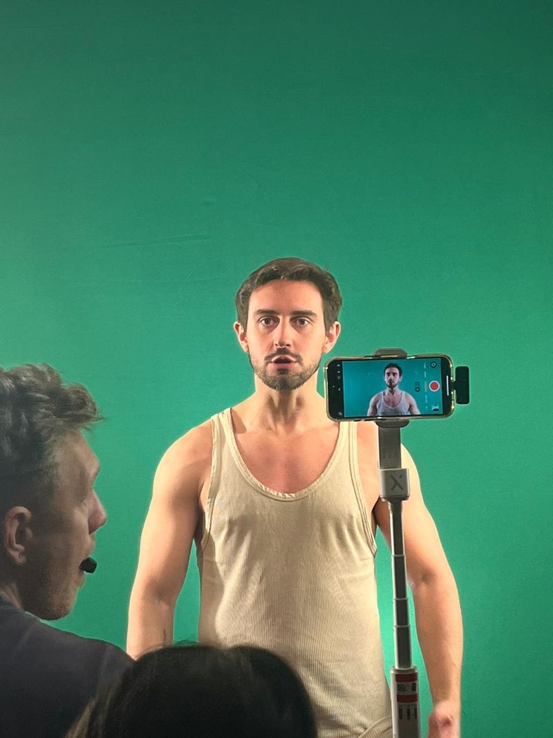 CHROMA los actores trabajan en pantalla verde (chroma) filmando sus escenas con elementos y escenarios inexistentes para su postproducción CHROMA actors work on a green screen (chroma), filming their scenes with non-existent elements and settings for post-production